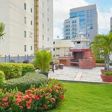 Exquisite Oceanfront Suite Santo Domingo, som ligger i distriktet Downtown Santo Domingo inom 5 minuters promenad från Palacio de Bellas Artes, erbjuder fitnesslektioner och lekområde. Den 54 m² stora lägenheten har en pool och en terrass med utsikt över staden.